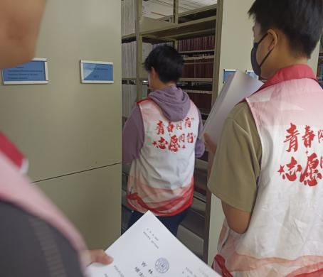 第二组志愿者在图书馆二楼进行书籍整理工作,按照老师指导的书籍编号顺序、摆放方式及注意事项,志愿者们井然有序地展开行动。在不打扰其他员工学习的情况下,志愿者们无声、迅速地分类归纳,按部就班完成所有工作。