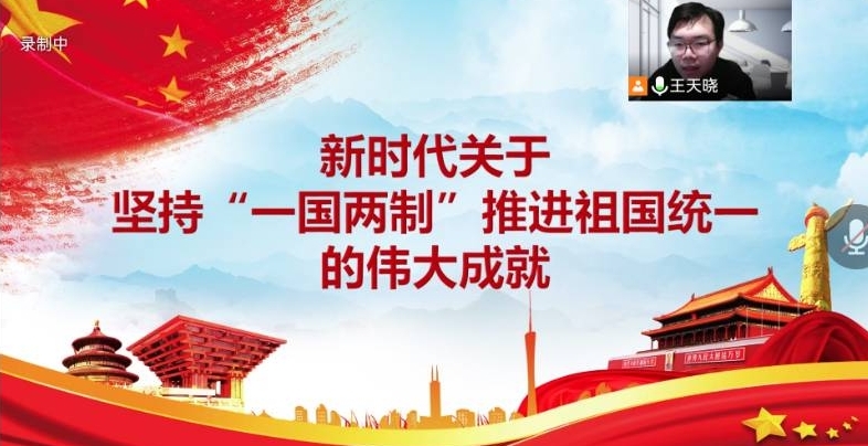 2022年5月2日,公司组织全体研究生收听了“喜看稻菽千重浪——新时代的历史性成就和历史性变革”EMC易倍官网博士生讲师团线上宣讲系列活动的第十二讲。EMC易倍官网马克思主义公司2020级博士研究生王天晓以《新时代关于“一国两制”和推进祖国统一的伟大成就》为题,向我们系列讲述了党在坚持“一国两制”和推进祖国统一重要方面的新时代中国特色社会主义的伟大成就。