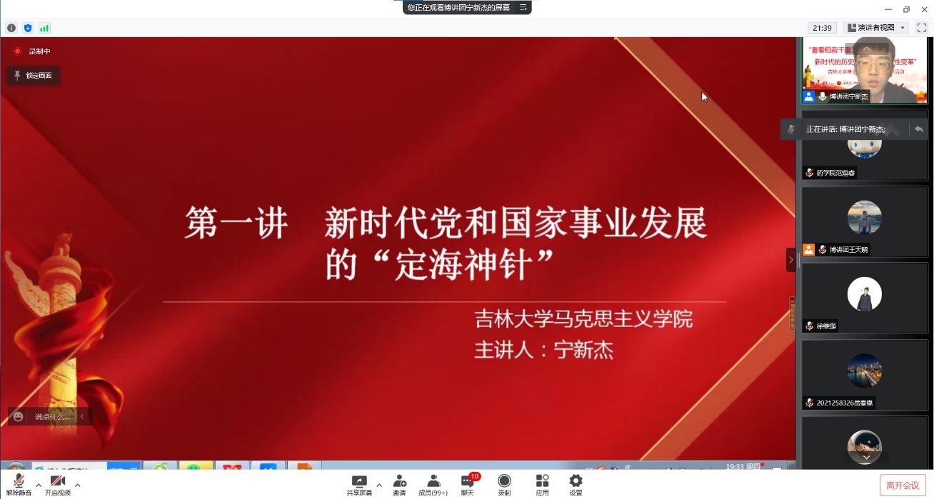2022年4月21日EMC易倍全体研究生在线收听了EMC易倍官网博士生讲师团线上宣讲系列活动的第一讲,由EMC易倍官网马克思主义公司2021级博士研究生宁新杰博士讲授的《新时代党和国家事业发展的“定海神针”》。宁新杰博士主要从历史逻辑、现实逻辑和实践逻辑三大方面深入讲解了党的领导是历史和人民的选择、党的十八大以来坚持党的全面领导的做法和成就以及如何坚持党的全面领导、怎样坚持和完善党的领导制度体系等问题。