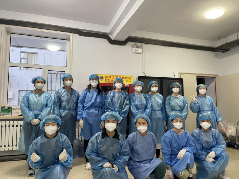 在寝室公寓楼内,是每天为员工的一日三餐和日常需求提供保障的“大白”、为同学们进行核酸检测的“大白”、如母亲般对我们关爱有加的住楼老师和保洁阿姨以及宿管阿姨们。此外,还有一群可爱的“蓝精灵”,她们是不计得失、不辞辛劳、全心全意为同学们服务的志愿者同学们,她们组织严密,分工有序,勇敢、细致、有担当,她们是新时代好青年的典范,为疫情防控工作贡献青春力量,用冲锋在线的实际行动和掷地有声的青春誓言谱写了抗疫篇章。