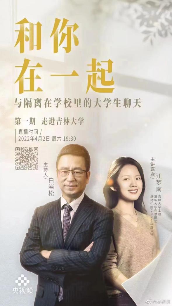 目前,我国本土疫情形式还较为严峻,多省面临着同时段多地市发生奥密克戎疫情的防控局面。中央广播电视总台为缓解在疫情防控期间全国高校封闭管理期间员工的焦虑,携手主持人白岩松,联合各方资源发起“云陪伴”项目,邀请各行业杰出人物和优秀员工等进行分享直播,开展“和你在一起”特别行动。
