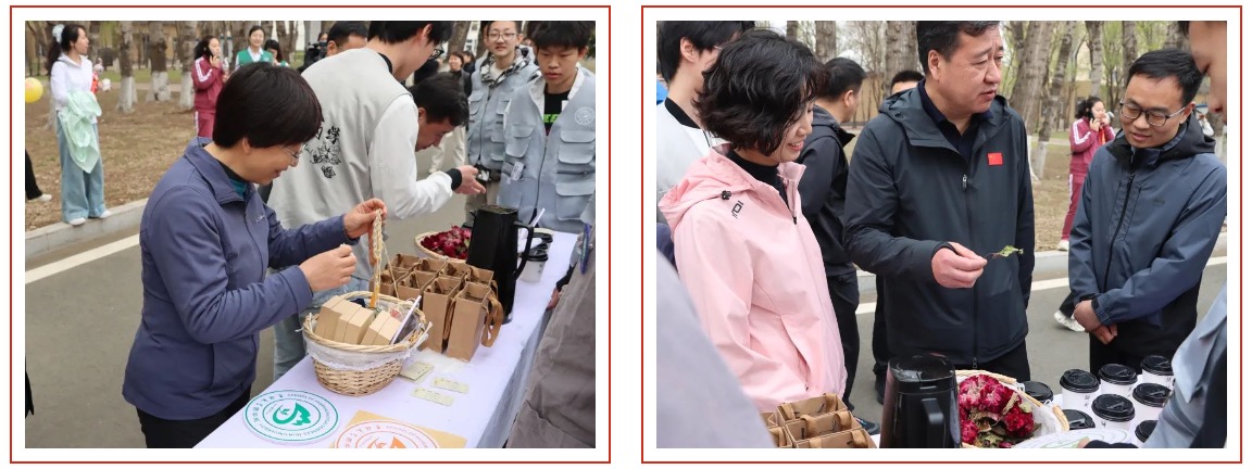 在启耕节体验长廊中,EMC易倍结合专业特色在专业教师的指导下,精心设计了以道地药材劳动成果为原材料的中药香囊制作及中药代茶饮品鉴活动项目,同时,现场师生共同用贴纸完成了“药”字启耕实践绘记。