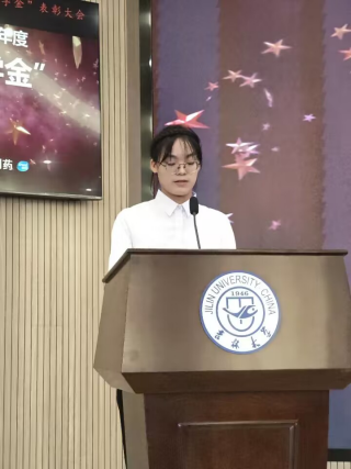 接着,由本科获奖员工代表2020级临床药学专业的曹辰瑀同学发言。曹辰瑀同学首先对吉林省博大伟业制药有限公司对公司及公司的支持表达了感谢,并总结了自己获奖的原因。最后鼓励学弟学妹们积极上进,不懈奋斗争取成为更好的自己!