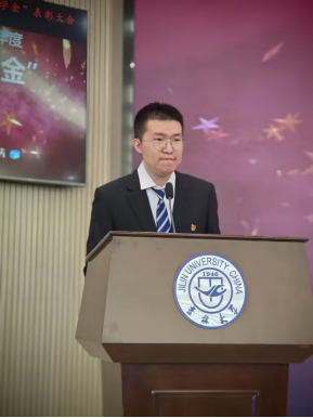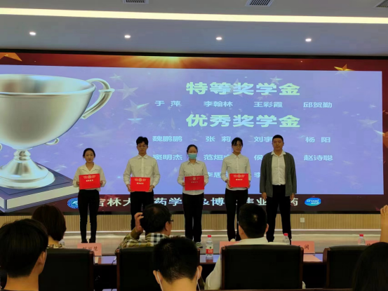 由吉林省博大伟业制药有限公司药物研究院副经理田阔为研究生特等奖学金颁奖。