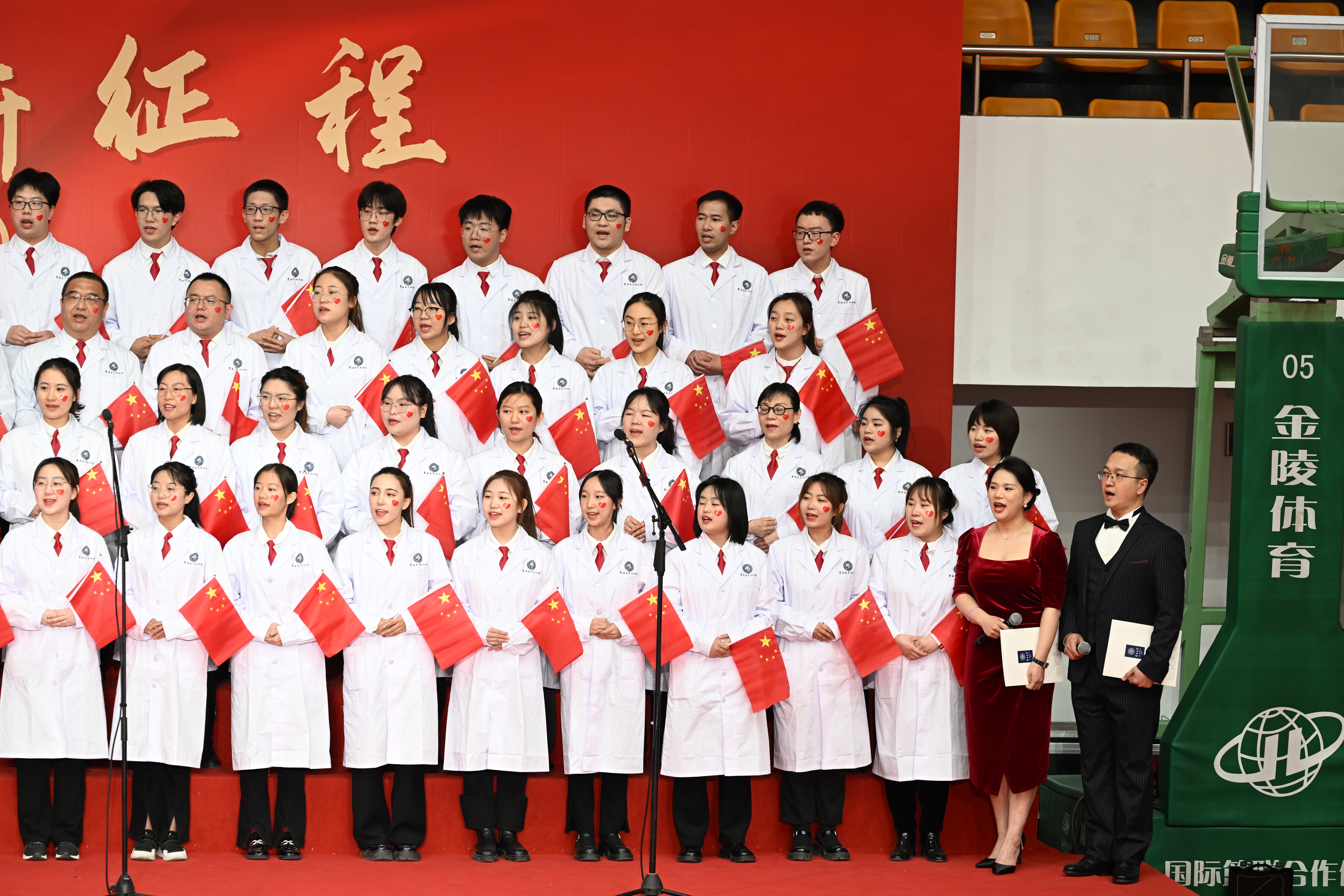 2023年4月24日晚,EMC易倍官网“凝心铸魂谱华章 奋发有为新征程”主题合唱展演活动(医学部选拔阶段)在EMC易倍官网白求恩医学部新民体育馆成功举办。EMC易倍100名教师与学子身穿EMC易倍白衣用嘹亮的歌声,铸造鎏金乐章,用经典熟悉的旋律,演绎时代华章。