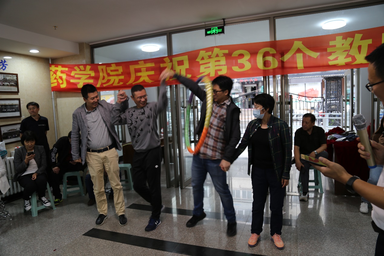 最后一个游戏是呼啦圈传递,这个游戏需要队伍中的老师们手拉手站成一排,团结传递呼啦圈。