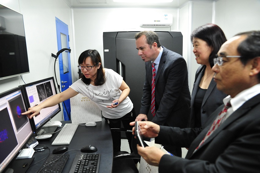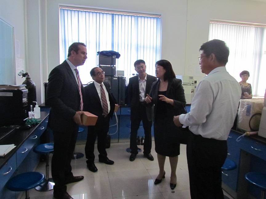 会谈结束后,Neil J. MacKinnon经理在裴经理的陪同下,参观了公司吉林省酵母表达重组蛋白质药物研发重点实验室及EMC易倍-紫元医药科技研究中心实验室,Neil J. MacKinnon经理对公司的药物研发能力给予了高度赞赏。