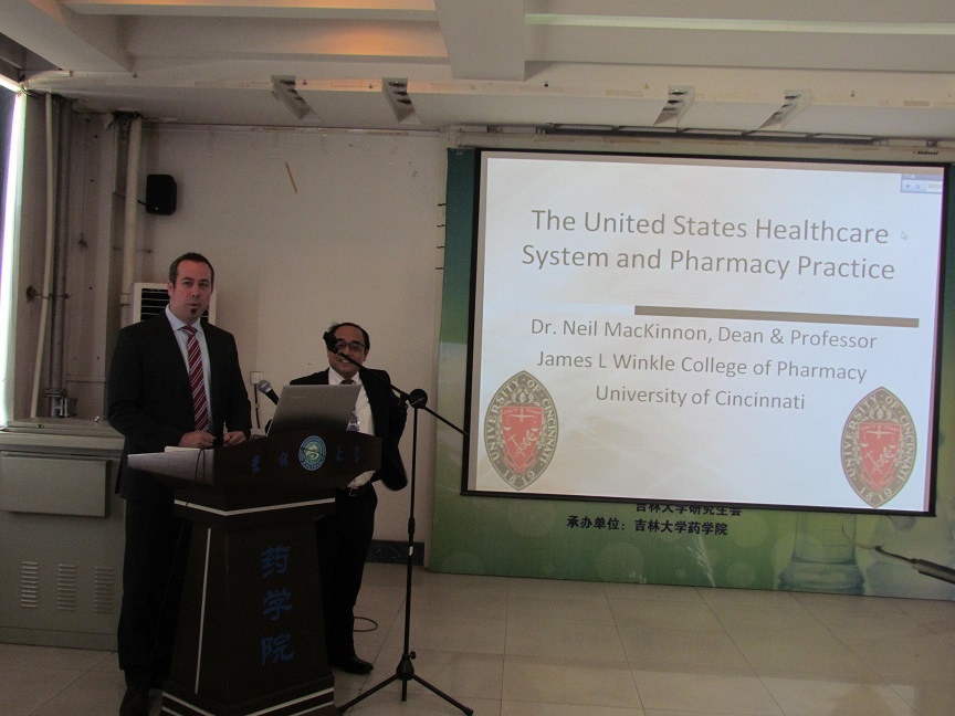 上午九点,在公司五楼报告厅举行了学术交流会议,EMC易倍相关领导、相关专业的教师以及公司本科生及研究生参加了会议,会议由马杰副经理主持。会上,裴经理首先代表公司对Neil J. MacKinnon教授、Alex C. Lin博士的来访表示欢迎,并对公司的团队概况、专业设置情况、招生情况以及科研情况进行了介绍。接着,Neil J. MacKinnon经理介绍了辛辛那提大学EMC易倍概况,并进行了以“US healthcare system and pharmacy practice”为主题的学术演讲,在公司教师和员工中引起了强烈反响。
