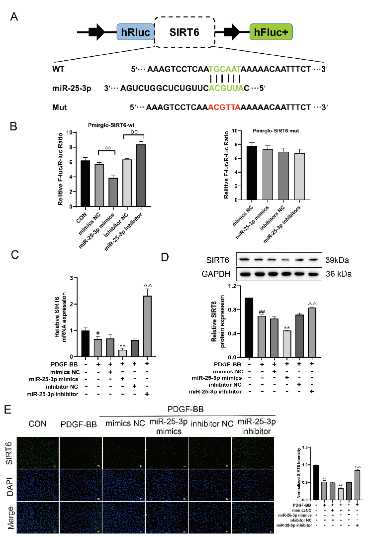 从作用机制层面深入探究,发现miR-25-3p 可直接靶向作用于沉默调节蛋白(SIRT6)并对其进行调控(见图2)。